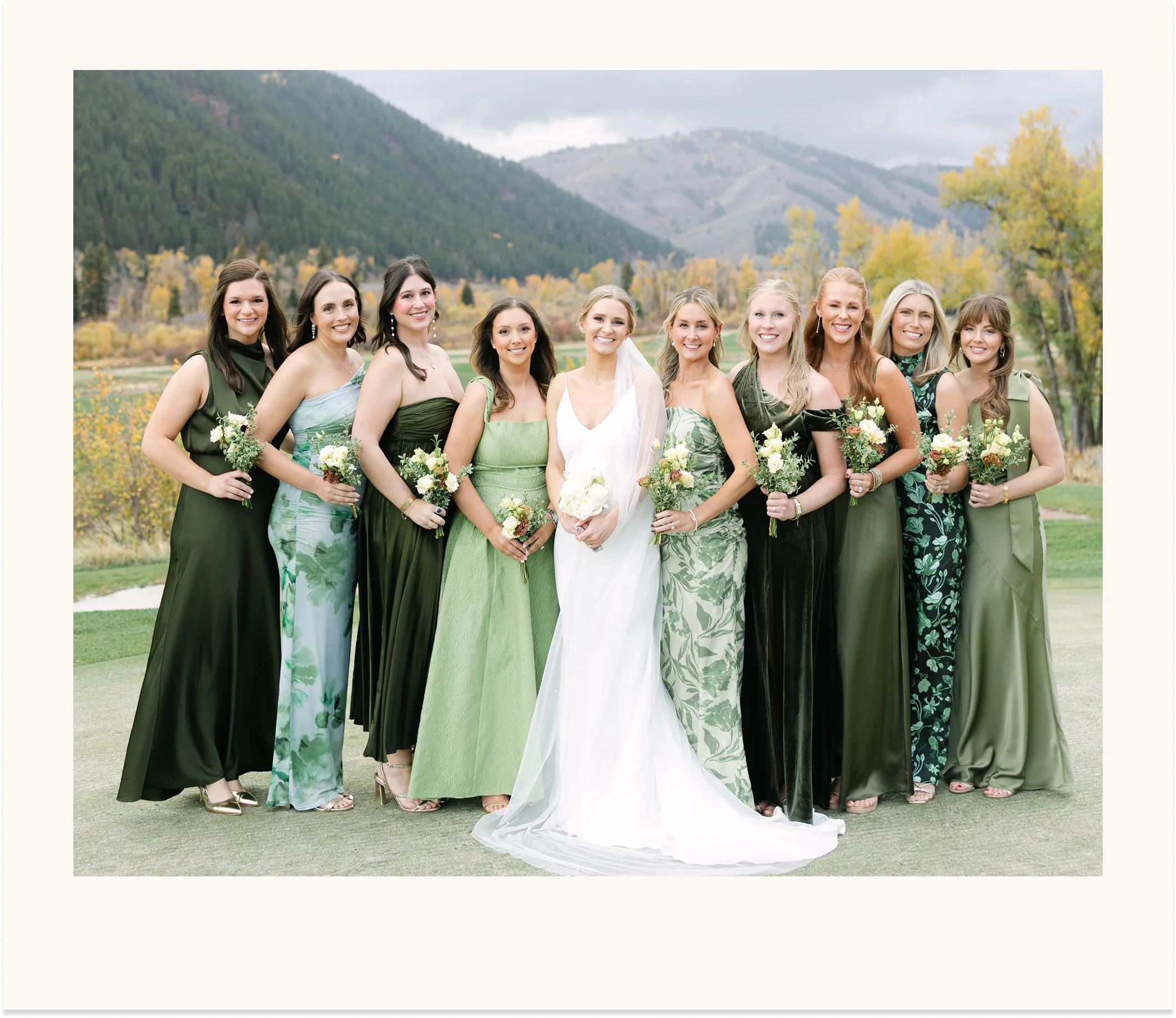 with the natural light, mountain climate, and your unique vision. From delicate, romantic styles to full-glam elegance, every look is designed to last, photograph beautifully, and keep you confident all day long.